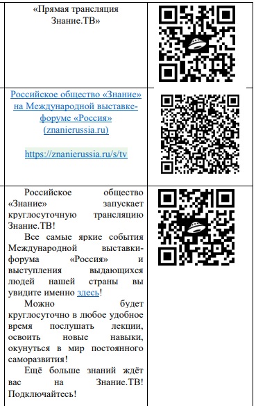 Российское общество «Знание» запускает круглосуточную трансляцию Знание.ТВ! Все самые яркие события Международной выставкифорума «Россия» и выступления выдающихся людей нашей страны вы увидите именно здесь! Можно будет круглосуточно в любое удобное время послушать лекции, освоить новые навыки, окунуться в мир постоянного саморазвития! Ещѐ больше знаний ждѐт вас на Знание.ТВ! Подключайтесь!
