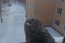 Утро началось с посещения кабинета английского языка. К нам сегодня из леса прилетал гость. Уральская неясыть.