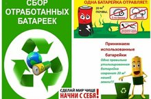 В нашей школе продолжается экологический месячник. Мы каждый день пользуемся приборами на батарейках. Когда срок службы батарейки заканчивается, мы их выбрасываем. А правильно ли мы делаем? Батарейки вредны для окружающей среды. Батарейки содержат цинк, свинец, ртуть, никель, медь, марганец, литий, серебро. Одна батарейка может отравить пространство в 20 квадратных метров, на котором могут расти два дерева, живут один ёжик, два крота и несколько тысяч дождевых червей. А еще одна батарейка может отравить 400 литров воды. Приглашаем всех учащихся, учителей и работников школы принять участие в данной акции. Сделай мир чище - начни с себя!