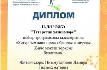 Учащиеся 6а,б классов участвуют в городской программе «Сокровища Татарстана». Прошел 2 этап конкурса “Хәтер һәм дан” / “Память и слава”, где дети работали над проектом, посвященный году памяти и славы. Команда защитила проект и заняла 2 место среди школ города. Поздравляем учащихся 6а,б классов и учителя татарского языка и литературы Низамутдинову Дамиру Гилмехаматовну. Желаем им дальнейших успехов!