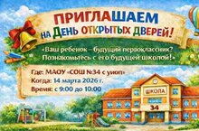 14 марта в нашей школе №34 состоится день открытых дверей.