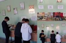 В нашей школе около библиотеки организована выставка книг, посвящённая Дню Родного языка и единства народов.