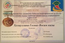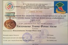 Татар әдәбиятында һәм сәнгатендә Габдулла Тукай премиясенә ия булган шәхесләребез иҗаты буенча l төбәкара фәнни- гамәли конференциясендә җиңүче дипломына лаек булган Хисамиева Элинаны ( фәнни җитәкчесе Нәҗметдинова Эльмира Факил кызы) котлыйбыз.