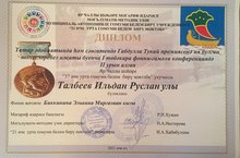 Татар әдәбиятында һәм сәнгатендә Габдулла Тукай премиясенә ия булган шәхесләребез иҗаты буенча l төбәкара фәнни- гамәли конференциясендә 2 урын алган 7а сыйныфы укучысы Талбеев Ильданны ( фәнни җитәкчесе Биккинина Эльвина Миргазиан кызы) котлыйбыз.