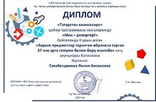 8О сыйныфы укучысы Шигапова Алина (укытучысы-Сафина Л.Р.), 6О сыйныфы укучысы Шакирова Эльвина (укытучысы-Хәлиуллина Г.В.) 2 урынга, 3Г сыйныфы укучысы Кашапова Эмилия (укытучысы-Сәхәбетдинова Л.А.), Коробейникова Лиана (укытучысы-Закирова Л.В.) 2нче урынга лаек булдылар. Укучыларны һәм аларны әзерләгән укытучыларны котлыйбыз, уңышлар телибез!