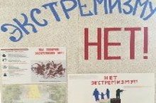 Ребята из ШСУ организовали в рамках месячника "Экстремизму нет!" сменную выставку рисунков учеников с 3 по 11 класс.