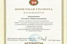 Благодарим учителя татарского языка и литературы Биккинину Эльвину Миргазиановну, за подготовку призера республиканской олимпиады школьников по татарскому языку