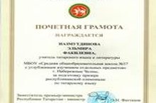 Поздравляем и благодарим учителя татарского языка и литертары Назмутдинову Эльмиру Факилевну за подготовку призера Республиканской олимпиады школьников по татарскому языку. Желаем дальнейших творческих успехов!