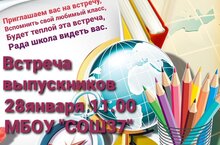 Приглашаем Вас на День встречи выпускников. Не важно, как давно вы были школьником, не важно, сколько лет назад стояли Вы на пороге взрослой жизни. Эта встреча позволит оставить в стороне все беды и тревоги, проблемы и переживания и снова стать Вам тем самым юным, весёлым, счастливым и беззаботным ребёнком. И пусть эти сладкие мгновения, добрые встречи и яркие улыбки наполнят Вас новыми надеждами и силами. Ждём Вас на празднике там, где Вы учились, влюблялись, мечтали и делились с друзьями своими переживаниями.
