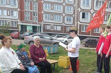 В целях патриотического воспитания, в честь 80 -й годовщины Победы в ВОВ и Года защитника Отечества учащиеся 7о и 8б классов провели мини- парад у дома ветерана Асылгараевой Сабиры Хазиевны, жительницы дома 51/10.