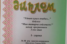 21.12.2018 года прошел XIII Всероссийский конкурс детского творчества “Туган як”. По итогам конкурса Халилов Алмаз (7в) (руководитель Ахмадеева Ф.С.) занял 1 место и награжден Дипломом I степени.