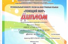 Поздравляем лауреата Регионального конкурса песни на иностранных языках "ПОЮЩИЙ МИР" Яруллину Диану! Руководитель: Гимадиева Лидия Вячеславовна.