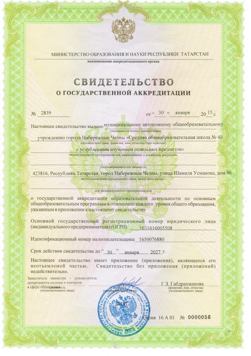 Муниципальное автономное общеобразовательное учреждение города Набережные Челны «Средняя общеобразовательная школа №40 с углубленным изучением отдельных предметов»/Яр Чаллы шәһәренең «Аерым фәннәр тирәнтен өйрәнелә торган 40 нчы урта гомуми белем бирү мәктәбе» муниципаль автономияле гомуми белем бирү учреждениесе