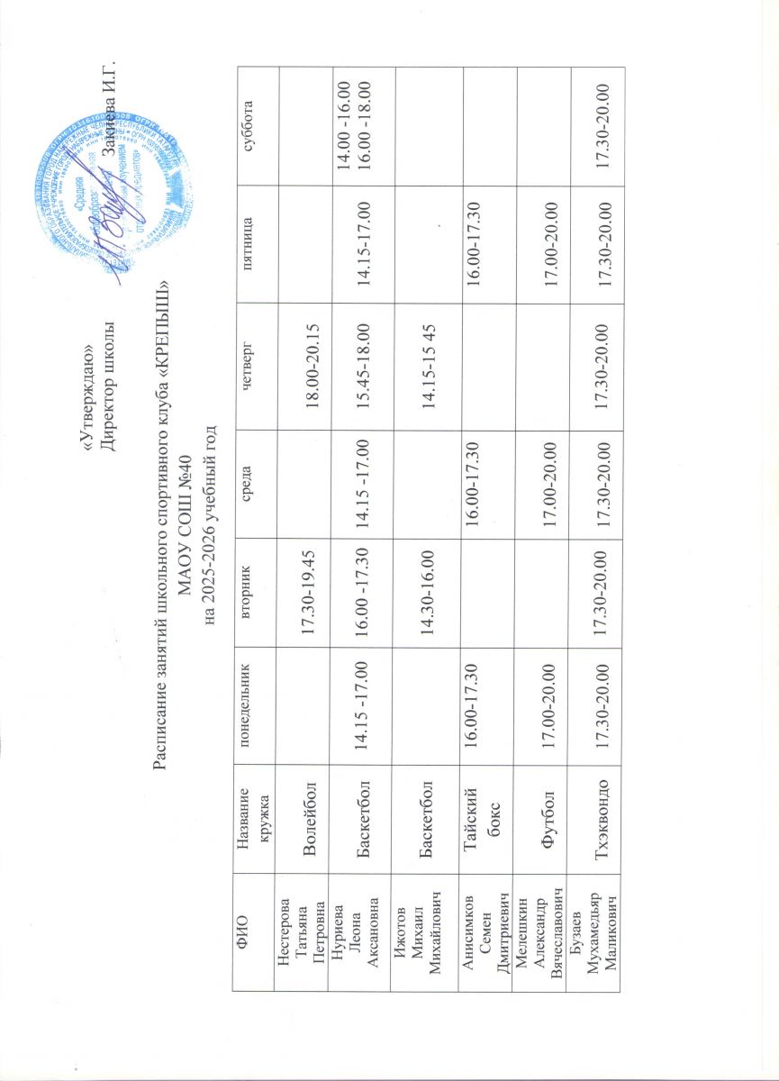 Расписание занятий ШСК "Крепыш" на 2022/2023 уч. год