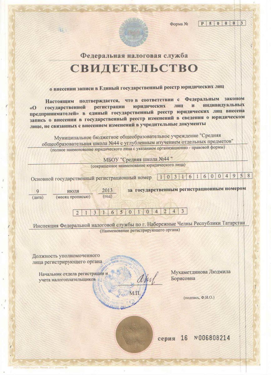 Муниципальное бюджетное общеобразовательное учреждение «Средняя общеобразовательная школа №44 с углубленным изучением отдельных предметов» / Яр Чаллы шәһәренең “Аерым предметлар тирәнтен өйрәнелә торган 44 нче урта гомуми белем бирү мәктәбе” муниципаль бюджет гомуми белем бирү учреждениясе