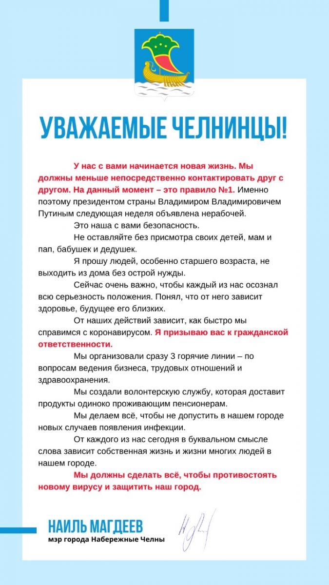 Обращение мэра к челнинцам/Мэрның чаллылыларга мөрәҗәгате