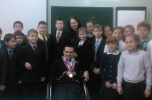 Перед тимуровцами выступил удивительный художник, инвалид детства, лауреат международных конкурсов Ренат Мусин. Это был урок добра, мужества, умения быть милосердными. Большое спасибо, маме Рената, педагогам ДОМа, классному руководителю Зумрат Даминовне за такую встречу.