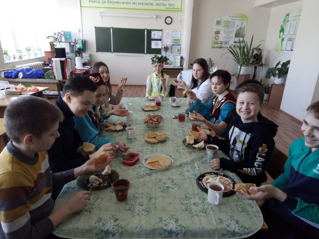 Нәүрүз – төрки һәм фарсы телле халыкларның бик борынгыдан килгән бәйрәме. Ул 21 мартта көн белән төн тигезләшкән көнгә туры килә. Шул уңайдан мәктәбебездә бәйрәм үткәрелде. Укучылар бәйрәмдә төрле бәйгеләрдә катнашып көч сынашты, күңел ачтылар. Бәйрәмнән соң коймак белән чәй эчтеләр.