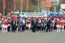 1мая - праздник весны и труда в городе Набережные Челны прошел ярко и красочно. На традиционную первомайскую демонстрацию вышли представители профсоюзов города, общественных организаций, сотрудники городских предприятий и организаций, председатели национальных общин. С почетной трибуны поздравил горожан с весенним праздником руководитель Исполкома города Наиль Магдеев. В праздничном митинге и шествии приняло участие более 16 тысяч челнинцев, в том числе в шествии участвовало более 2 тысяч работников образования. У всех было отличное праздничное настроение. Спасибо нашим учителям во главе с директором школы И.И.Тухфатуллиным и председателем профкома Е.А.Волобуевой.