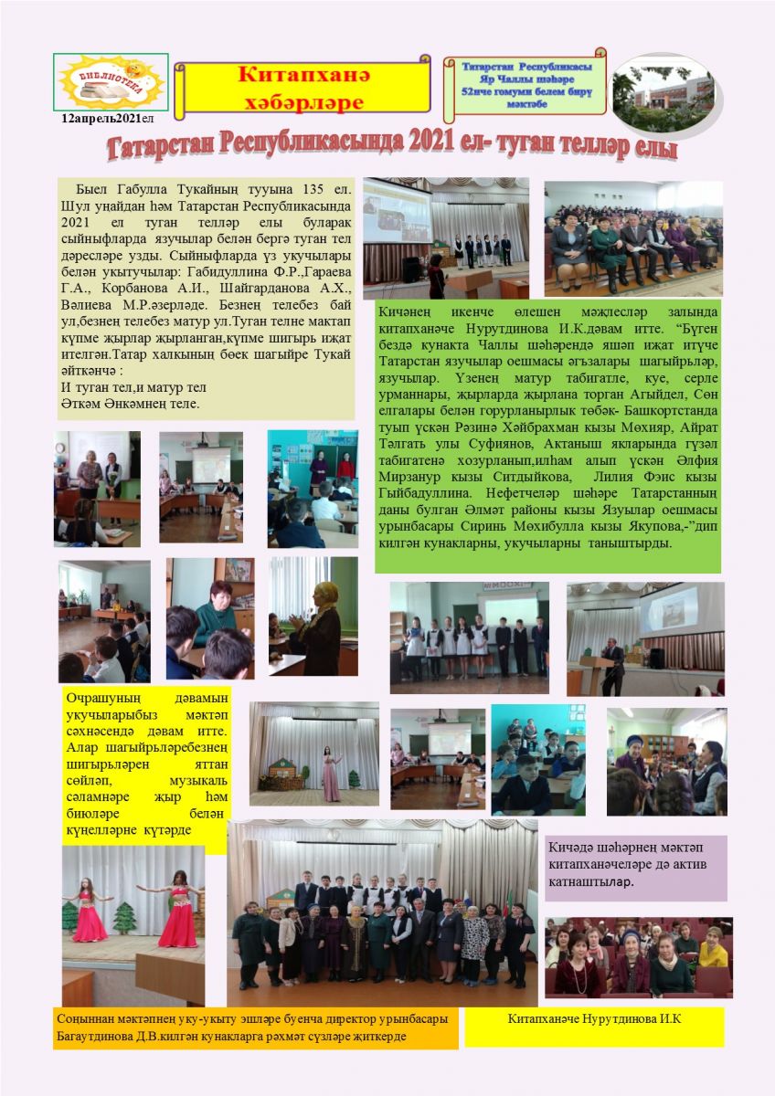 Муниципальное бюджетное общеобразовательное учреждение «Средняя общеобразовательная школа №52» города Набережные Челны Республики Татарстан / Яр Чаллы шәһәренең "52 нче урта гомуми белем бирү мәктәбе" муниципаль бюджет гомуми белем бирү учреждениесе - новости
