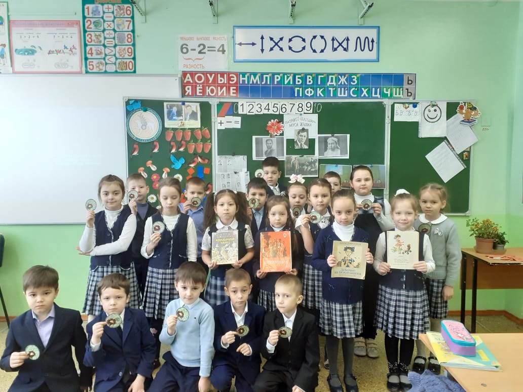 В школе продолжаются мероприятия, посвященные ко дню рождения М. Джалиля. Первоклассники изучают биографию поэта-героя, читают его стихи. Ученики 1 Б класса участвовали в Джалилевских чтениях.