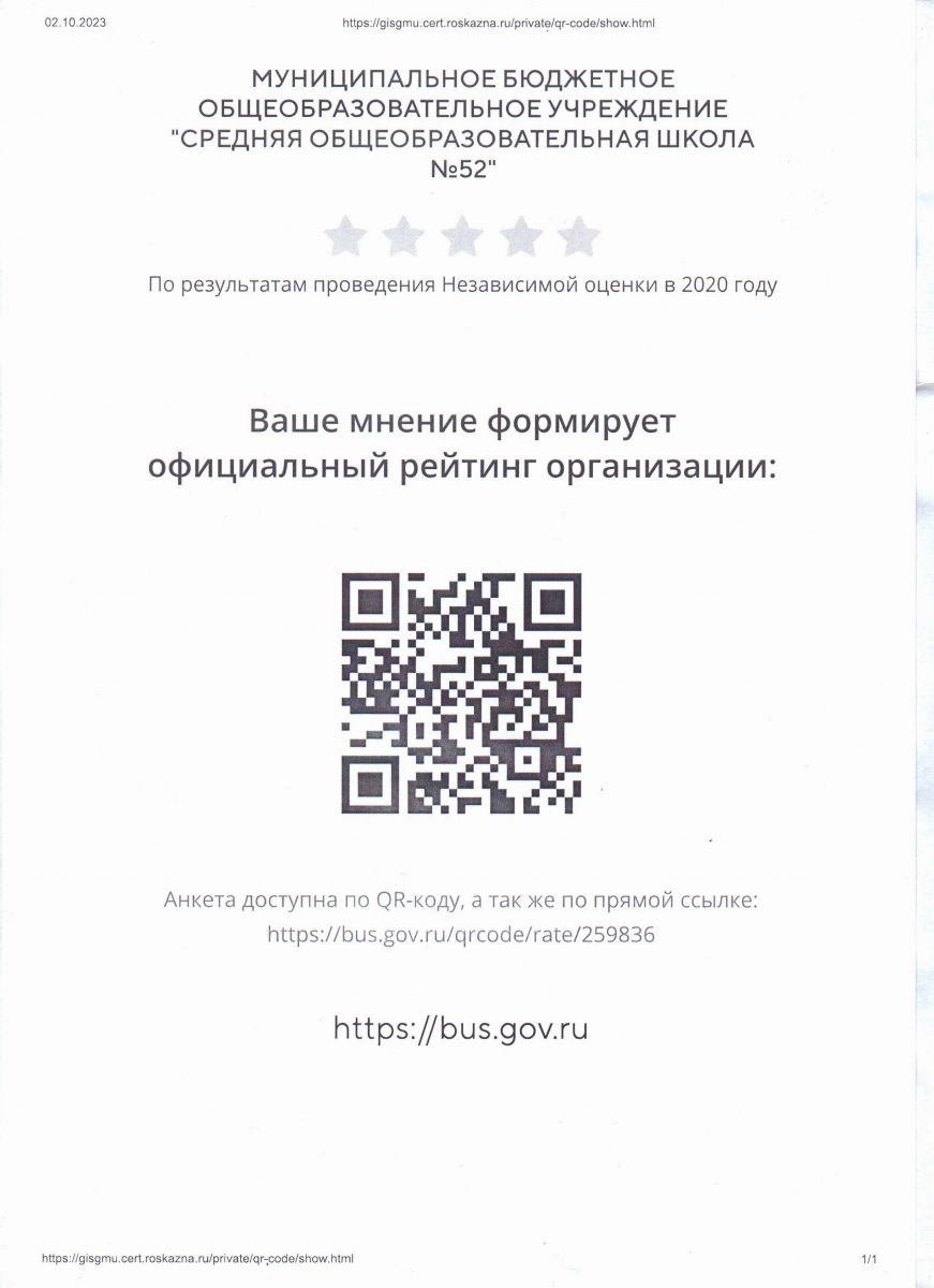Муниципальное бюджетное общеобразовательное учреждение «Средняя общеобразовательная школа №52» города Набережные Челны Республики Татарстан / Яр Чаллы шәһәренең "52 нче урта гомуми белем бирү мәктәбе" муниципаль бюджет гомуми белем бирү учреждениесе