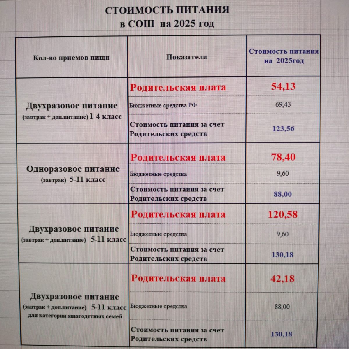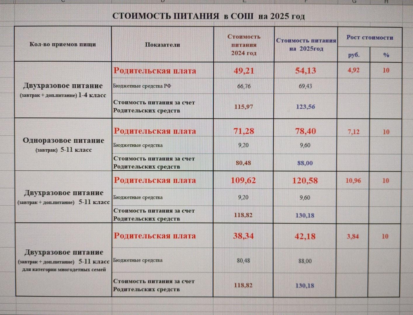Стоимость питания 2025 год.(второе полугодие)