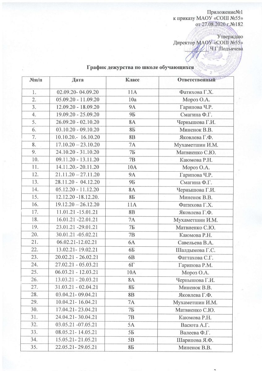 График дежурств 10.09.2020