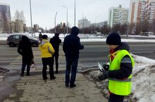 Члены отряда ЮИД из 3д класса вышли на очередной рейд по ПДД на перекрестке близ остановки "Школьный проезд", раздали листовки и буклеты прохожим пешеходам.