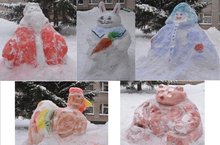 В этом году наконец-то пришла снежная зима. Ребята из 9, 11 классов пофантазировав, на радость малышам, вылепили Дед Мороза и его друзей.