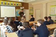 В рамках Всероссийского урока «Сделаем вместе» перед учащимися 10-х классов выступил руководитель отдела госинспекции экологического надзора Р. Гараев, рассказал о проблемах взаимодействия человека с окружающей средой (загрязнение воздуха, воды, почвы, рукотворные лесные пожары, проблемы отходов, энергетические и сельскохозяйственные проблемы России и мира и др.) с целью обратить внимание каждого школьника на необходимость «жить в мире с окружающим миром».