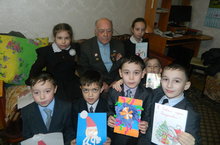На зимних каникулах тимуровский отряд 2 Б класса «Школа добрых дел» навестил ветерана ВОВ Уразаева Степана Ивановича, поздравили его с Новым годом и подарили открытки, сделанные своими руками.