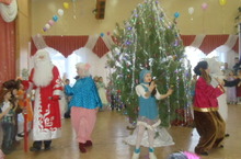 Новый год спешит к нам, и ребята веселятся на праздничных ёлках. В этом году ребят пришли поздравить герои сказки «По щучьему велению» - Емеля, Царь и Царевна Несмеяна, белая лошадка Савраска, забавные зверушки Хрюша и Гаврюша, и конечно Дедушка Мороз со Снегурочкой.