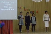 15 апреля в нашей школе прошел литературно-музыкальный вечер, посвященный столетию со дня смерти великого татарского поэта Г. Тукая. ученики 1-7 классов инсценировали произведения Г. Тукая "Бала белэн кубэлэк", "Кызыклы шэкэрт"(Забавный ученик"), "Эш беткэч, уйнарга ярый"("Кончил дело, гуляй смело"), "Бишек жыры" ("Колыбельная"). А еще читали его стихи на татарском и русском языке, пели песни, познакомились с жизнью и творчеством поэта. Вечер прошел интересно.