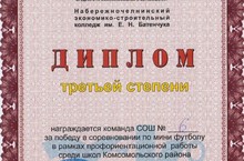 31 октября команда СОШ № 6 завоевала III место в сорвнованиях о мини-футболу в рамках профориентационной работы среди школ Комсомольского района