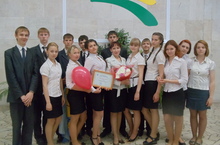 За победу в городском конкурсе тимуровских отрядов "Спешите делать добро!" отряд "Искорка", 9А класс (командир отряда Сафина Альбина, классный руководитель Запивахина И.В.) получил сертификат для поездки в г. Санкт-Петербург. Сертификат вручил заместитель руководителя Исполнительного комитета Рамиль Халимов.