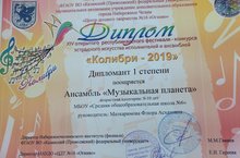 Поздравляем школьный ансамбль "Музыкальная планета" (руководитель Маткаримова Ф.А) , дипломантов 1 степени, и детский хор "Улыбка", дипломантов 2 степени, XIV республиканского фестиваля - конкурса эстрадного искусства исполнителей и ансамблей "Колибри 2019"!