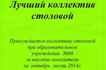 Коллектив нашей столовой был отмечен грамотой за высокие резуьтаты по итогам октября 2014 года.