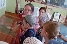 Ребята побывали на экскурсии в школьном музее им. С.А. Ажмякова . Рассмотрели экспонаты «Из бабушкиного сундука».