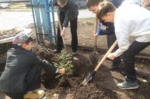Ученики 6А класса начали посадку елей.