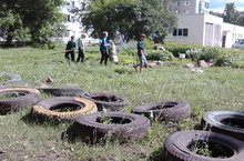 Ребята тимуровских отрядов в количестве 35 человек, выходили на уборку в сквер «Аллея сказок». Во дворе дома Зяб 17/24.