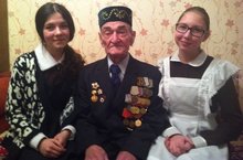 Экскурсоводы музея боевой славы им. С. А. Ажмякова Клыпина Даша и Шагиева Алина в гостях у ветерана Кашапова Ф. М., ветерана Великой Отечественной войны.