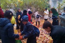 Лицеисты занимаются уборкой школьной территории.