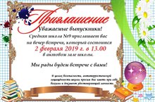 2 февраля 2019г. в 13.00 Средняя школа №9 приглашает на вечер выпускников!