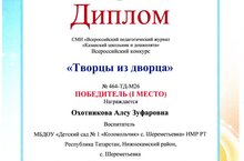 Наши педагоги приняли участие во Всероссийском конкурсе "Творцы из дворца", организованном СМИ "Всероссийским педагогическим журналом "Казанский школьник и дошколята" и стали победителями: Охотникова Алсу Зуфаровна - диплом за 1 место в номинации "Презентация о деятельности педагога" с работой "Правила дорожного движения для всей семьи достойны уважения"; Смирнова Светлана Аркадьевна - диплом за 2 место в номинации "Представление педагогического опыта" с проектом "Моё село - одно на всю Россию", Фролова Наталья Викторовна - диплом за 2 место в номинации "Успешный проект" с работой "Дошкольник в мире книги". Поздравляем коллег и желаем дальнейших творческих успехов и достижений!