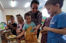 16 октября во всём мире отмечают День хлеба. В этот тематический день ребята узнали о том, как выращивают хлеб, какой он бывает и его пользе. Познакомились с процессом изготовления муки и выпекания хлеба. Рассмотрели образцы круп, муки и готовых хлебобулочных изделий. Дошкольники воочию увидели весь процесс приготовления любимых булочек, отправившись на экускурсию на пищеблок. В завершении дня дети с удовольствием полакомились вкусными, ароматными булочками.