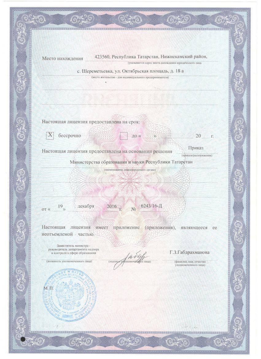 | Адрес: | 423560, Республика Татарстан, Нижнекамский район, село Шереметьевка, ул. Октябрьская площадь, д. 18а |