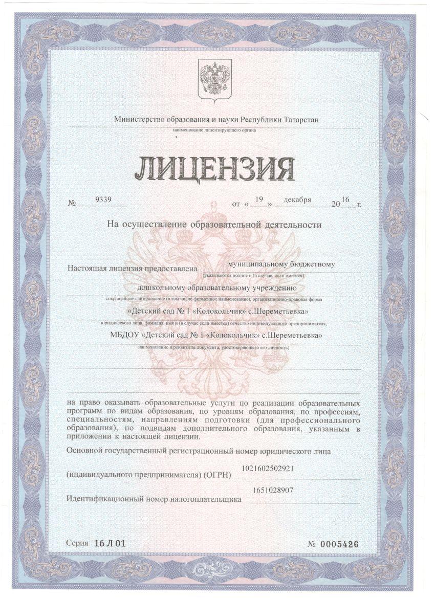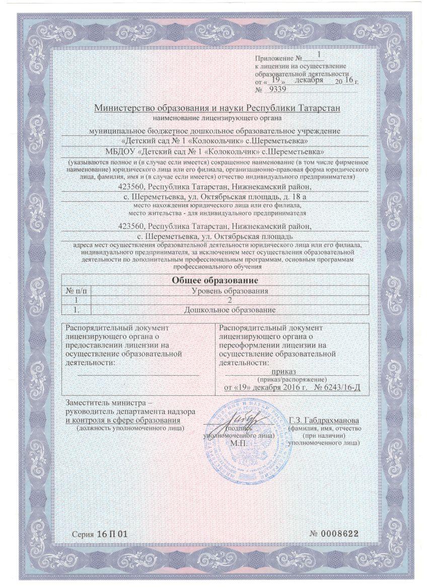 | Короткое название: | МБДОУ "Детский сад № 1 "Колокольчик" с. Шереметьевка" НМР РТ |