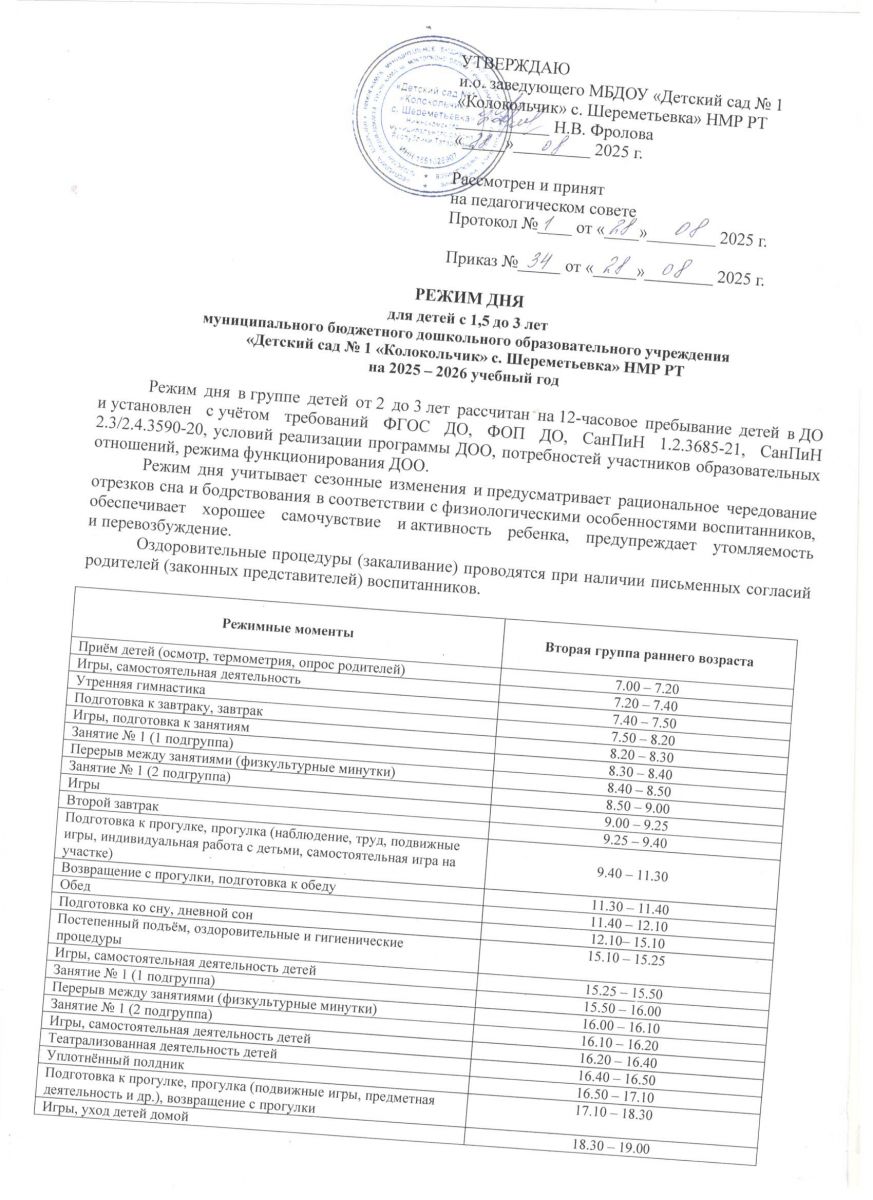 Режим дня для детей с 1,5 до 3 лет на 2025-2026 учебный год