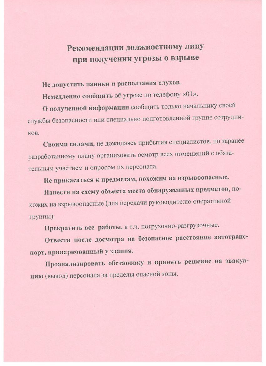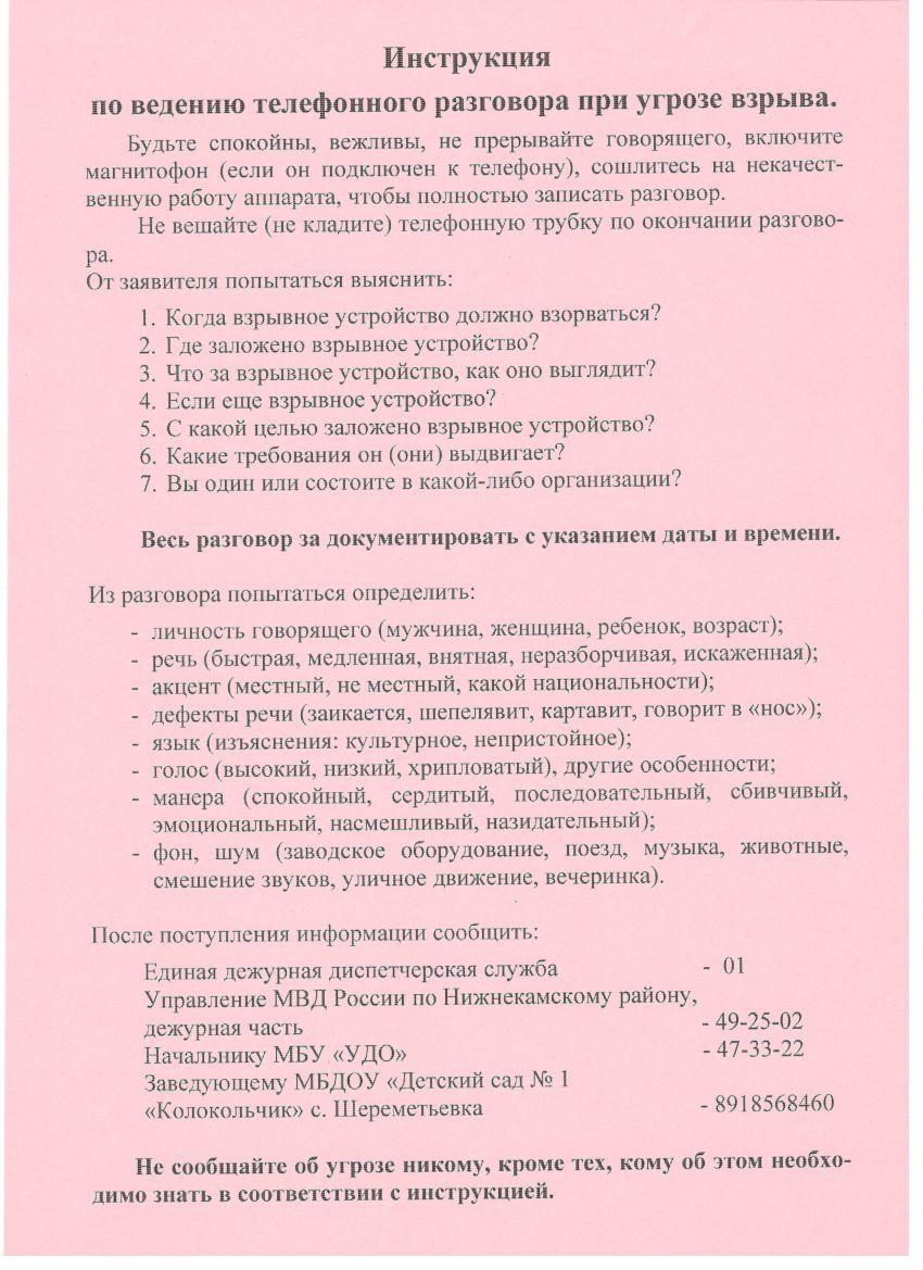 Памятка-инструкция по ведению телефонного разговора при угрозе взрыва